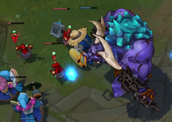 So this is something I am also working on at the moment; if you ever played the League of Legends closed beta, you might have encountered weird looking minions that weren’t used in the older versions of the game : my project is to bring them back, and to give you the opportunity to play with a full custom reskin for minions. Here’s a screenshot of the chaos minions rider from the beta :