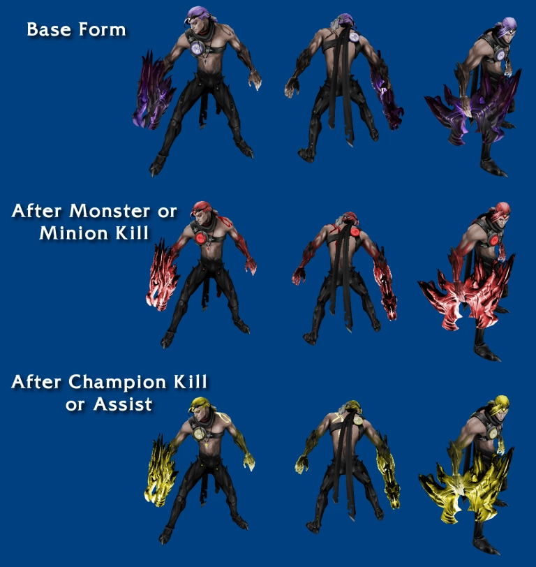 During development, i was going for a Super Saiyan theme, intending the Gold form to be the base. But it came to me as a big surprise that he really had 3 Skins wrapped in 1 package essentially. #NerdTip: You can think of the Red form as being a Kaioken if you want.
