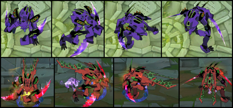 (ABOVE) LVL 1 KHA’ZIX. (BELOW) LVL 16 KHA’ZIX, EVOLVED Q, E, & R