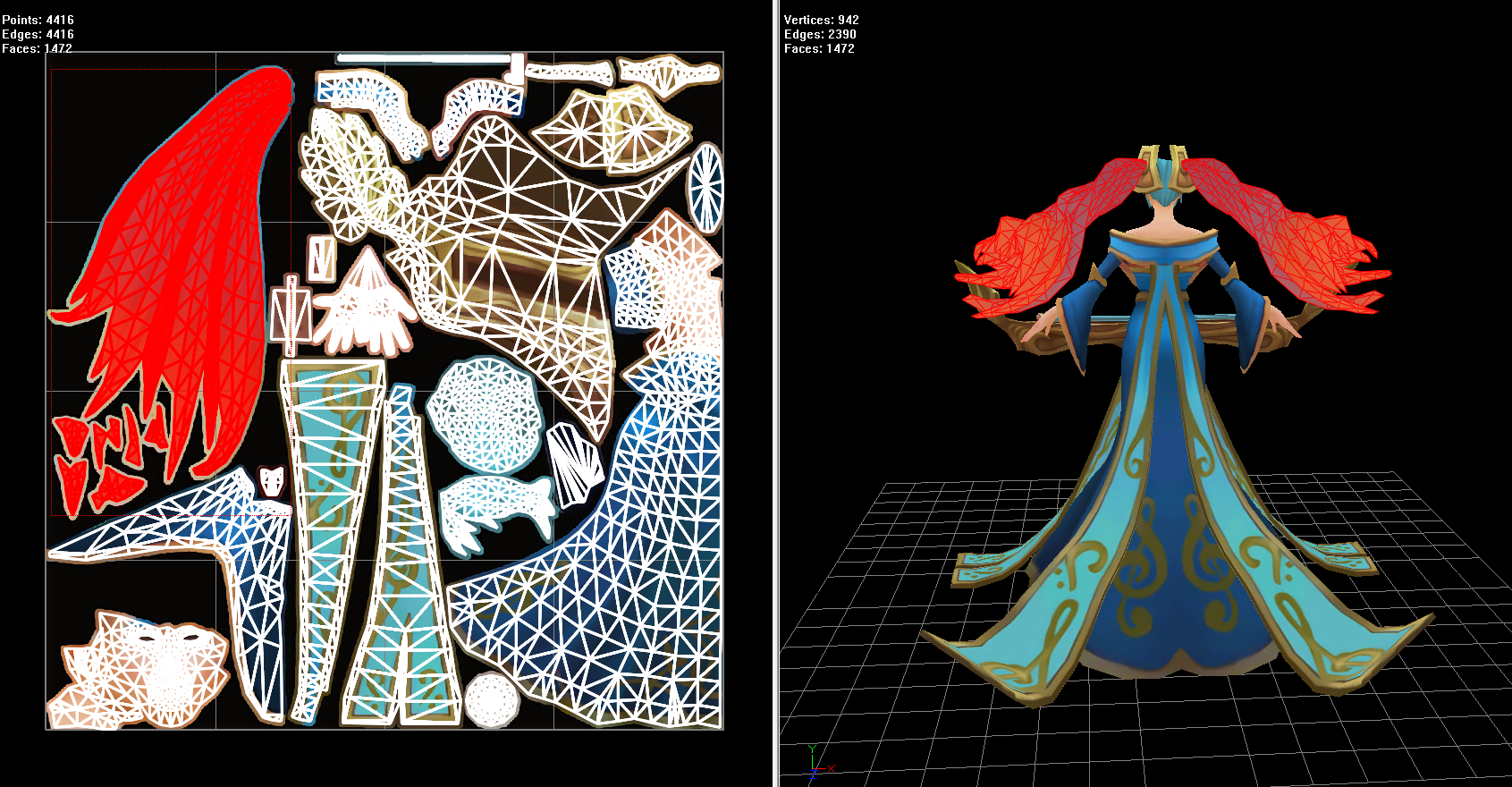 UU3D also allows you to find which areas the polygons and meshes are attached to in the model, so you can quickly find if that part is a piece of cloth or weapon or something else from the Champion.