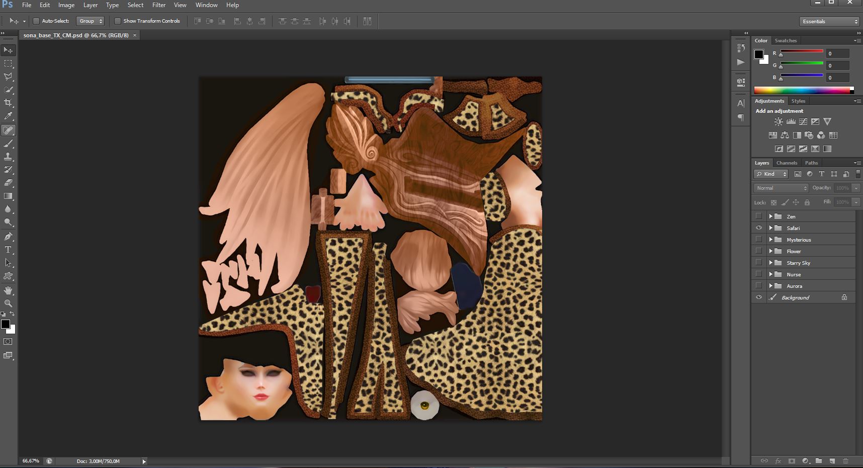 If you want to save for previewing with UU3D, just name it Sona.DDS (attention to uppercase here), or if you want to see it in game (as a final product) you need to save as sona_base_TX_CM.dds. This second is name is the original Sona file and it will be read by Wooxy (our skin installer) and the game.