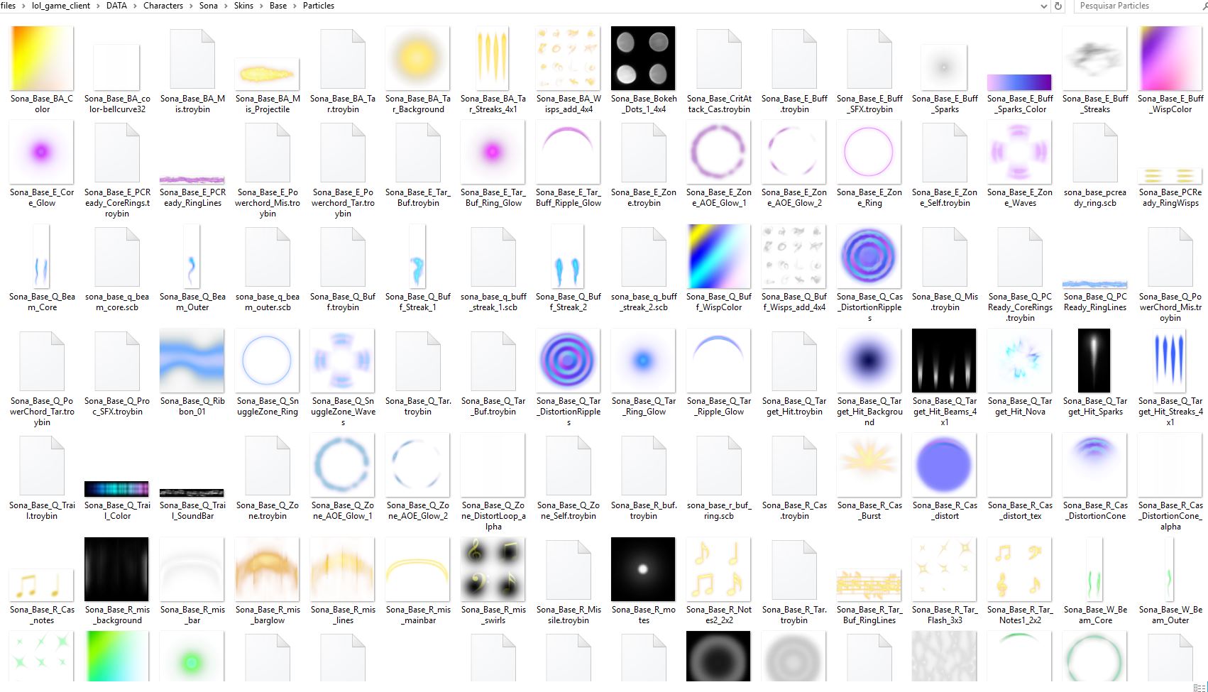 Finding particles to edit is harder than actually editing them. This is not a joke. For the previous Sona skins of the Sona Week, most particles I used were from the same folder from Sona, with the path indicated in the picture below: