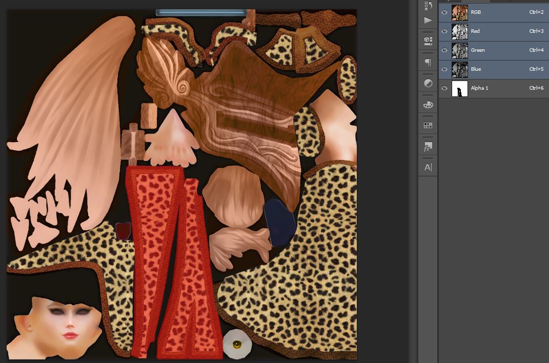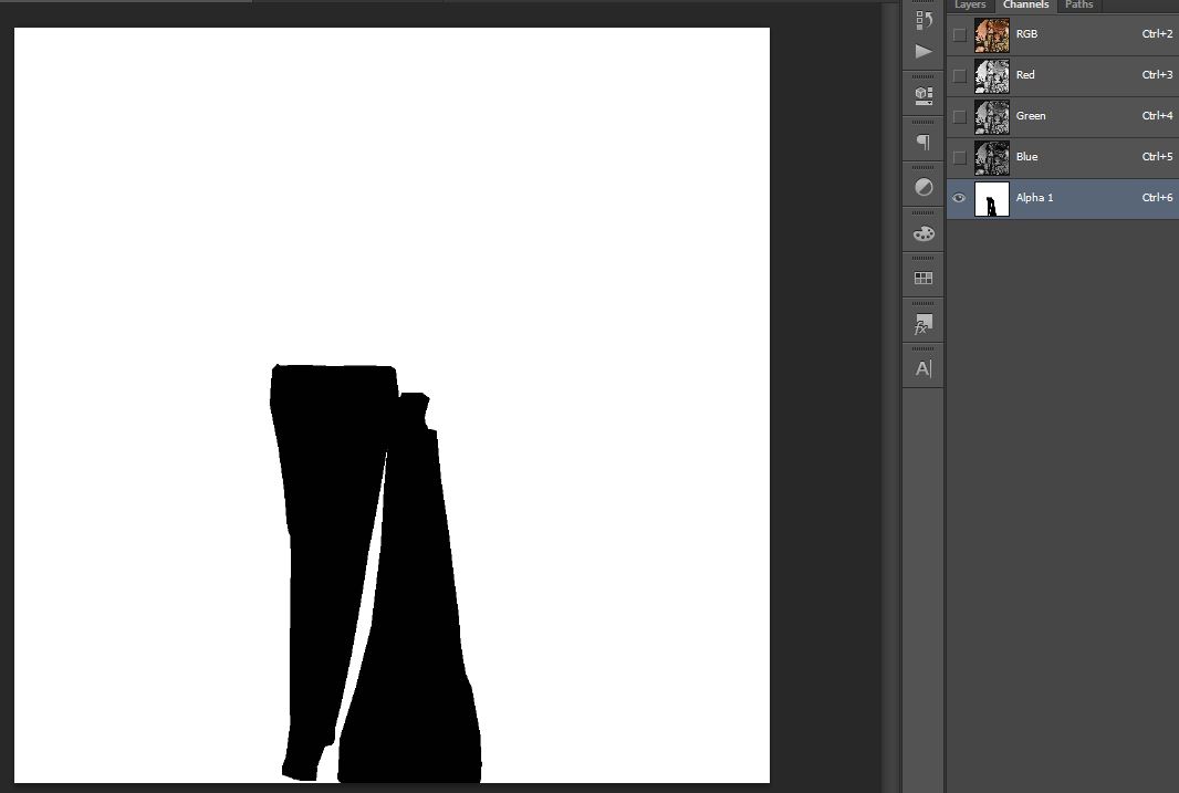 To get it started, let’s create a new layer inside the Channels tab. The new layer will be automatically named “Alpha 1”. After that, you can select the layer and paint it as you see fit. You can paint it with colors ranging from white to black (including tones of gray). White means visible - the area will appear in the game. Black means the area is invisible, it won’t appear in the game. If you use a 50% gray, the area will be semi-transparent in game, and it will have 50% opacity, cool to use for ghost effect or special fabric (transparent silk).